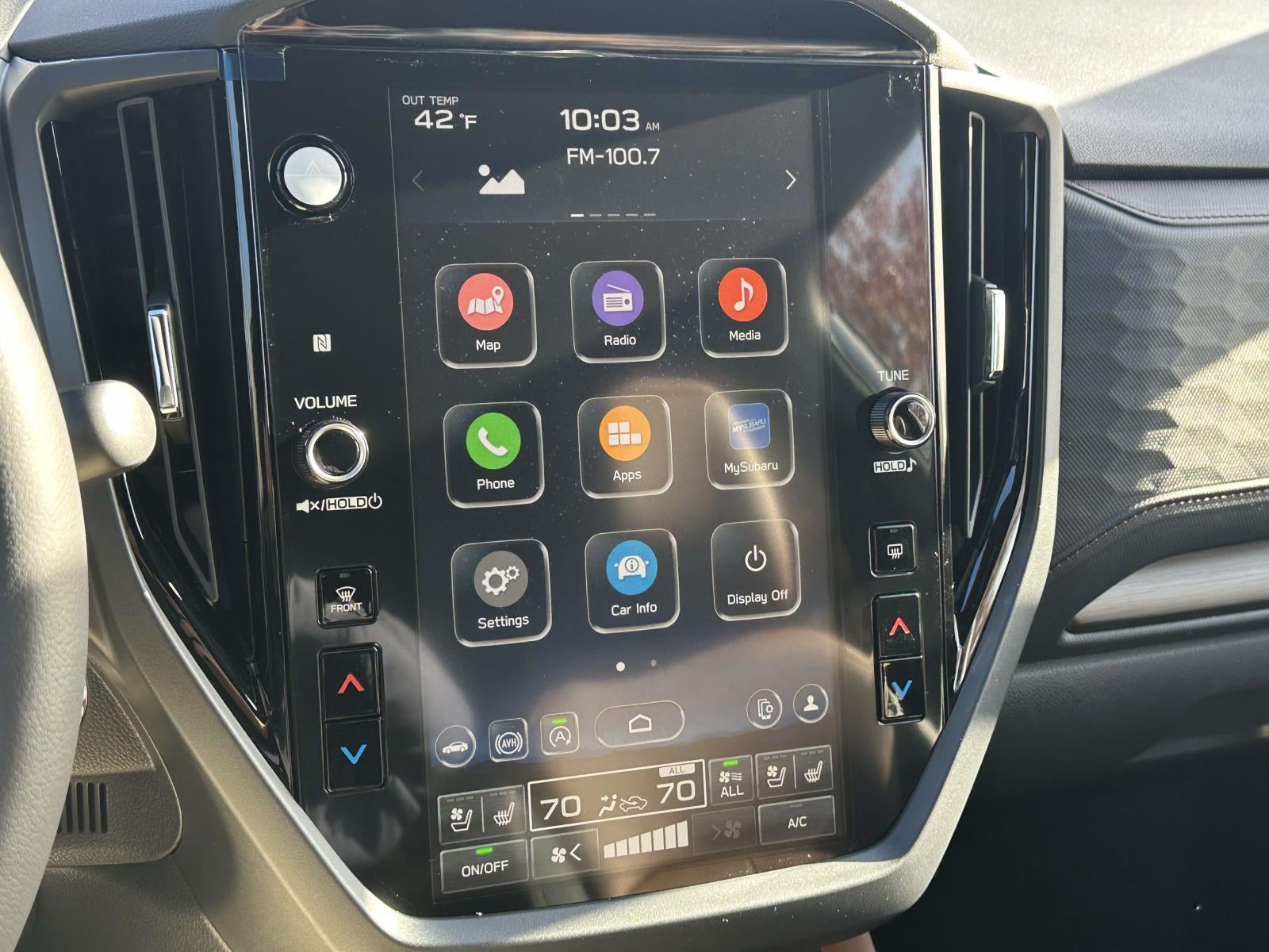 - Radio: Subaru 11.6" Multimedia Navigation System -inc: valet mode, integrated center information display, AM/FM stereo HD Radio, multi-touch gesture high resolution display screen, voice activated controls, voice activated navigation, Bluetooth® audio streaming and hands-free phone connectivity w/SMS text messaging connectivity (refer to subaru.com for cell phone compatibility), TomTom navigation software w/What3Words, iPod control capability, SiriusXM w/360L (4 months free trial/subscription required after), SiriusXM Travel Link (3 years free trial/subscription required after), SiriusXM Live Traffic (1 year free trial/subscription required after), smartphone integration for Android Auto and Apple CarPlay w/full screen view and wireless connection, USB and Over The Air (OTA) audio system update, TomTom navigation system update w/USB/Map Over The Air (MOTA) (3 years free map updates), steering wheel control switches for audio and Bluetooth®, harman/kardon speaker system w/11 speakers and 576 watt equivalent maximum output amplifier, 3.5mm auxiliary input jack and roof mounted audio and satellite antenna