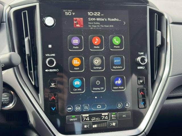 - Radio: Subaru 11.6" Multimedia Plus System -inc: AM/FM stereo, HD Radio, multi-touch gesture high resolution display screen, voice activated controls, Bluetooth® audio streaming and hands-free phone connectivity, Bluetooth® hands-free SMS text messaging connectivity, iPod control capability, smartphone integration: wired and wireless Android Auto w/full screen view and wireless Apple CarPlay w/full screen view, USB and Over The Air (OTA) audio system update, steering wheel audio system and Bluetooth® control switches, 6 speakers (2 dash panel tweeter, 2 front door and 2 rear door), illuminated 3.5mm auxiliary input jack, illuminated front USB A and C input/charge ports, connected services operation indicator, SOS emergency assistance: red SOS button and enhanced roadside assistance: blue i-button