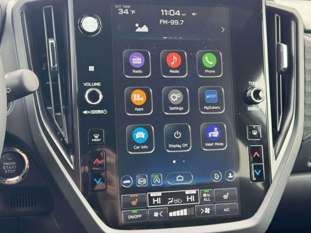 - Radio: Subaru 11.6" Multimedia Plus System -inc: valet mode, integrated center information display, AM/FM stereo HD Radio, multi-touch gesture high resolution display screen, voice activated controls, Bluetooth® audio streaming and hands-free phone connectivity w/SMS text messaging (refer to Subaru.com for cellphone compatibility), iPod control capability, smartphone integration: Android Auto and Apple CarPlay w/full screen view and wireless connection, SiriusXM satellite radio w/360L (free 4-month trial subscription included), USB and Over The Air (OTA) audio system update, steering wheel controls, 6 speakers, 3.5mm auxiliary input jack and roof mounted audio and satellite antenna