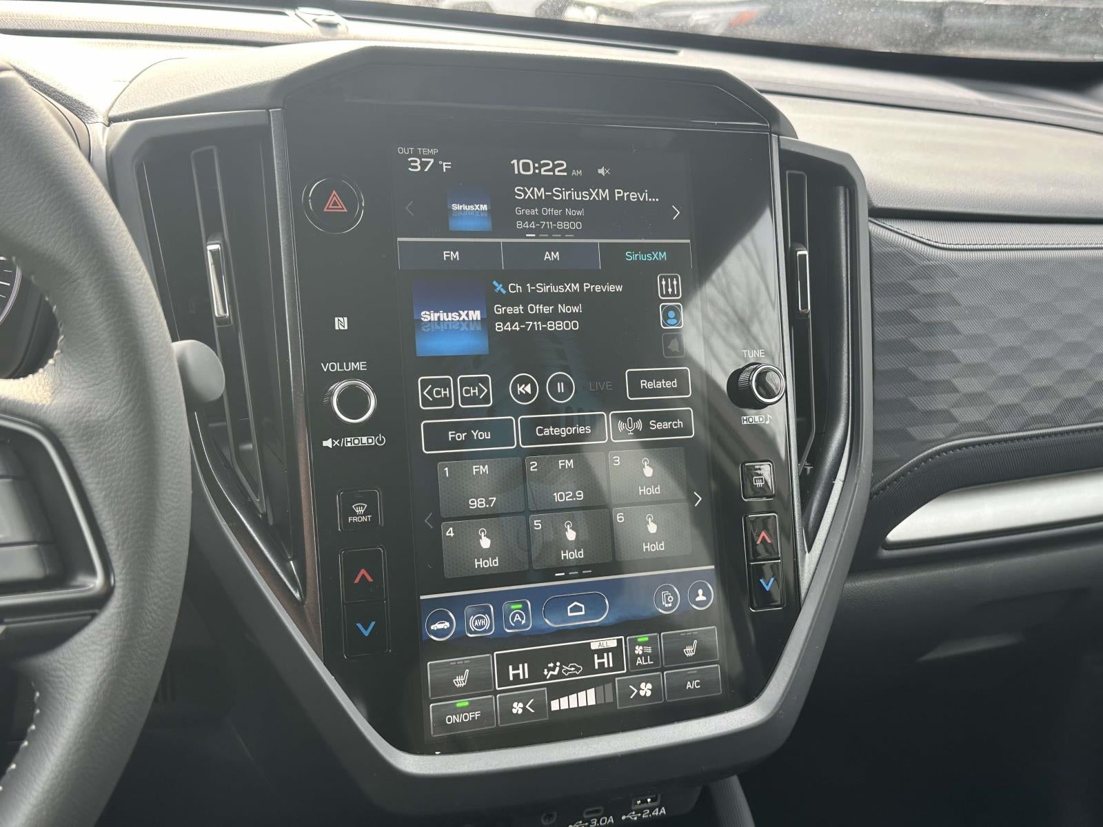 - Radio: Subaru 11.6" Multimedia Plus System -inc: valet mode, integrated center information display, AM/FM stereo HD Radio, multi-touch gesture high resolution display screen, voice activated controls, Bluetooth® audio streaming and hands-free phone connectivity w/SMS text messaging (refer to Subaru.com for cellphone compatibility), iPod control capability, smartphone integration: Android Auto and Apple CarPlay w/full screen view and wireless connection, SiriusXM satellite radio w/360L (free 4-month trial subscription included), USB and Over The Air (OTA) audio system update, steering wheel controls, 6 speakers, 3.5mm auxiliary input jack and roof mounted audio and satellite antenna
