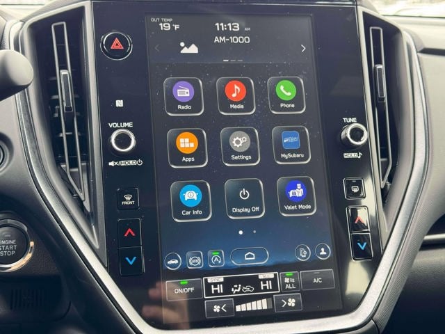- Radio: Subaru 11.6" Multimedia Plus System -inc: valet mode, AM/FM stereo, HD Radio, multi-touch gesture high resolution display screen, voice activated controls, Bluetooth® audio streaming and hands-free phone connectivity, Bluetooth® hands-free SMS text messaging connectivity, iPod control capability, smartphone integration: wired and wireless Android Auto w/full screen view, wireless Apple CarPlay w/full screen view and wireless connection, USB and Over The Air (OTA) audio system update, audio system and Bluetooth® steering wheel control switches, 6 speakers (2 dash panel tweeter, 2 front door, 2 rear door), illuminated 3.5mm auxiliary input jack, illuminated USB A and C input charge ports, roof mounted satellite and connected services, roof mounted black antenna, connected services operation indicator, SOS emergency assistance (red button) and ehanced roadside assistance (blue i-button)