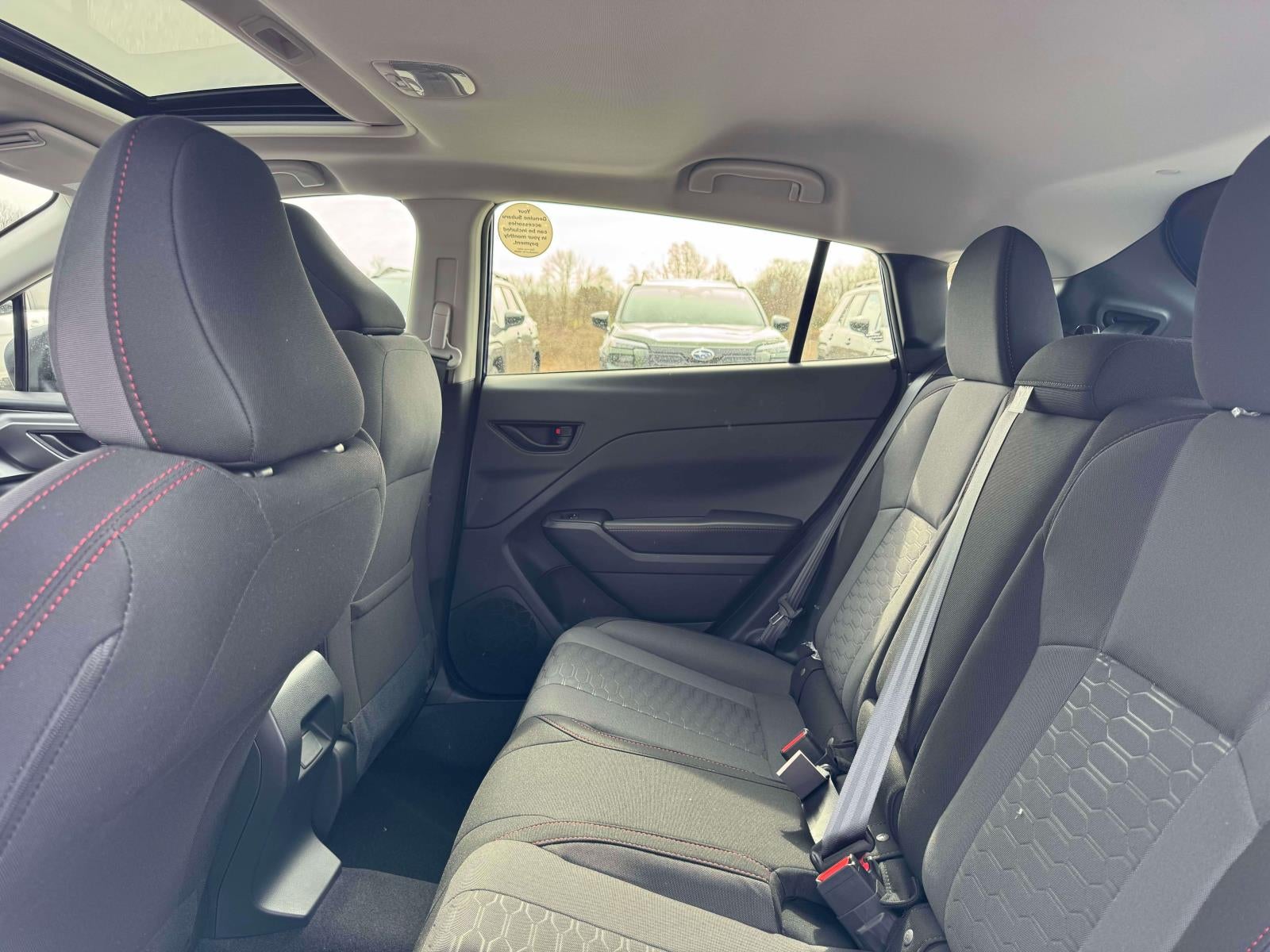 - Radio: Subaru 11.6" Multimedia Plus System -inc: valet mode, AM/FM stereo, HD Radio, multi-touch gesture high resolution display screen, voice activated controls, Bluetooth® audio streaming and hands-free phone connectivity, Bluetooth® hands-free SMS text messaging connectivity, iPod control capability, smartphone integration: wired and wireless Android Auto w/full screen view, wireless Apple CarPlay w/full screen view and wireless connection, USB and Over The Air (OTA) audio system update, audio system and Bluetooth® steering wheel control switches, 6 speakers (2 dash panel tweeter, 2 front door, 2 rear door), illuminated 3.5mm auxiliary input jack, illuminated USB A and C input charge ports, roof mounted satellite and connected services, roof mounted black antenna, connected services operation indicator, SOS emergency assistance (red button) and ehanced roadside assistance (blue i-button)