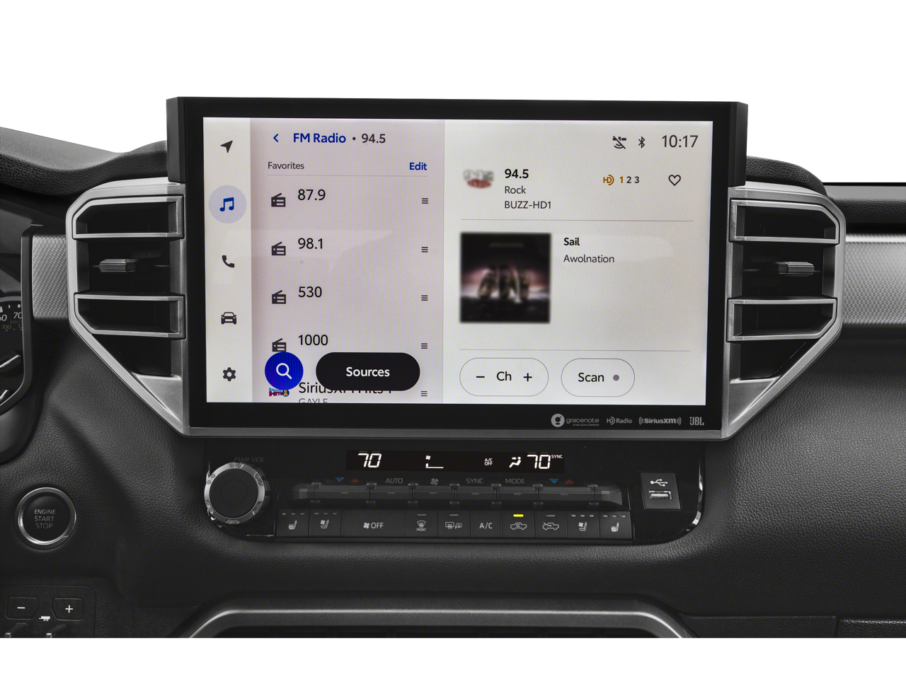 - Radio: Audio Multimedia System -inc: 14" touchscreen, 9 speakers, Android Auto, Apple CarPlay and SiriusXM w/3-month Platinum Plan trial subscription, See toyota.com/audio-multimedia for details